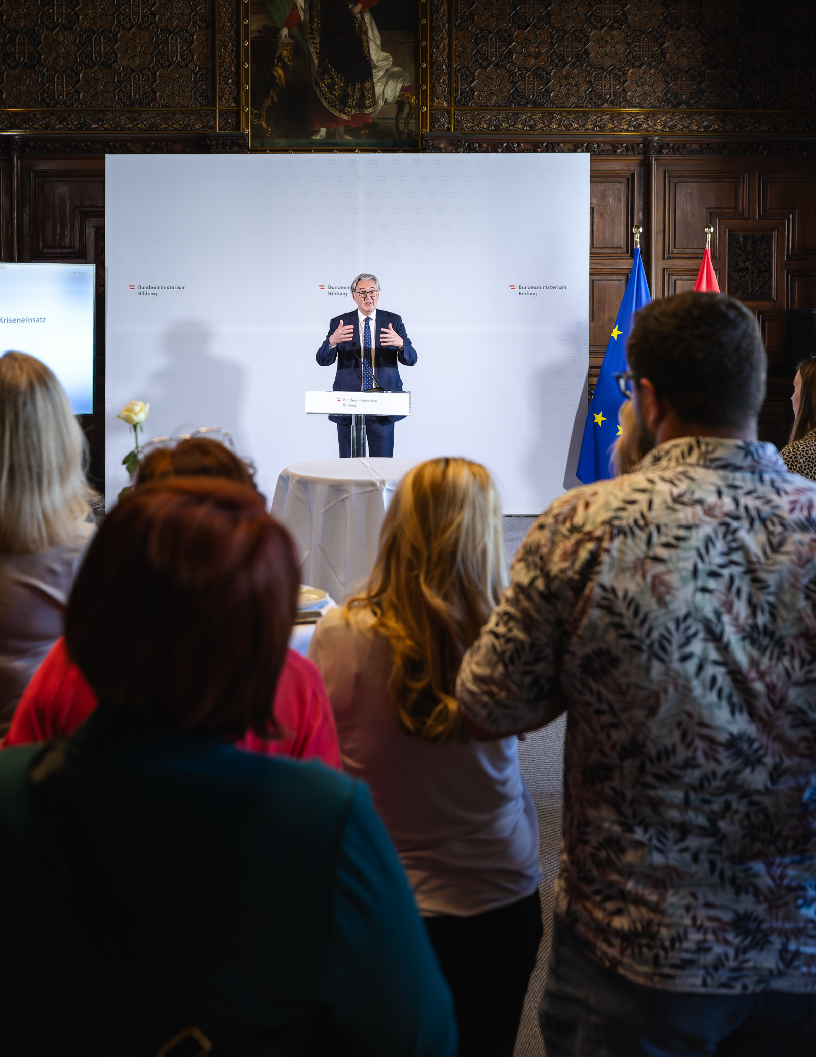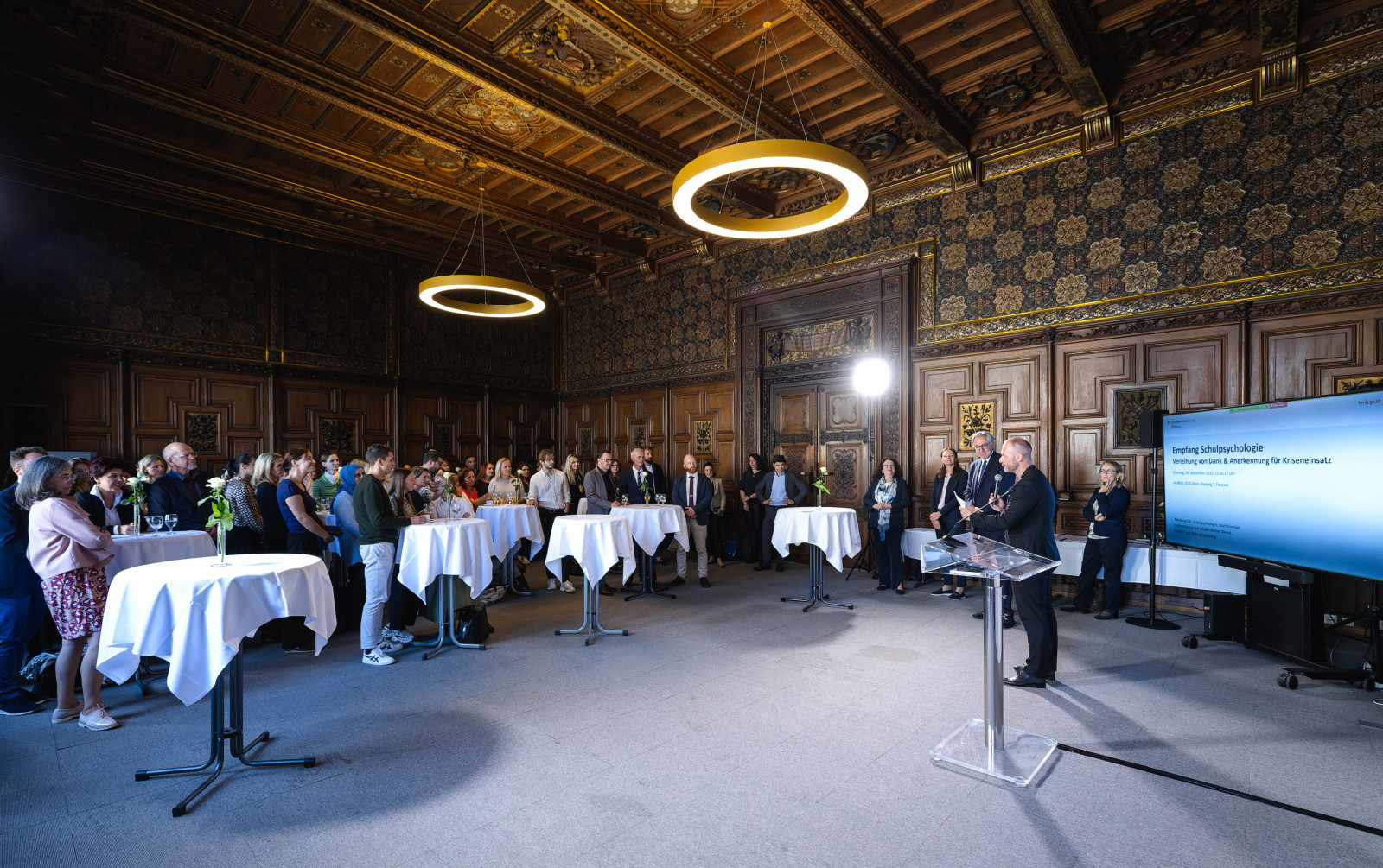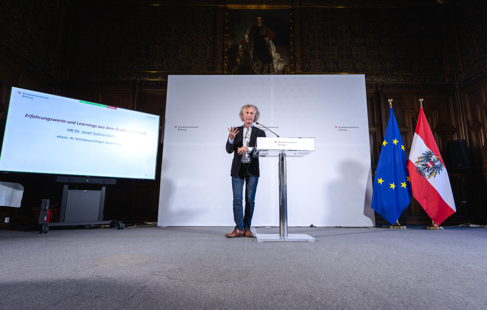 Schulpsychologinnen und Schulpsychologen wurden vom Herrn Generalsekretär (in Vertretung von Herrn Bundesminister) für ihren professionellen Einsatz nach dem schrecklichen Schulattentat am 10. Juni 2025 in Graz ausgezeichnet. Hervorgehoben wurde, in einer Zeit der Trauer und Unsicherheit, die außergewöhnliche und herausragende Leistung der Schulpsychologinnen und Schulpsychologen.