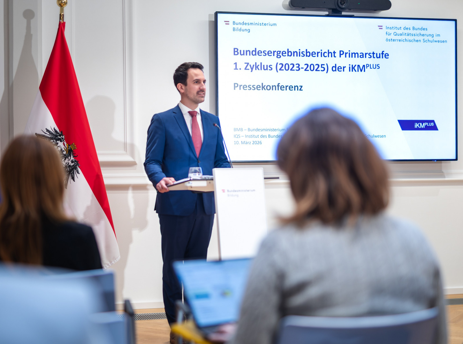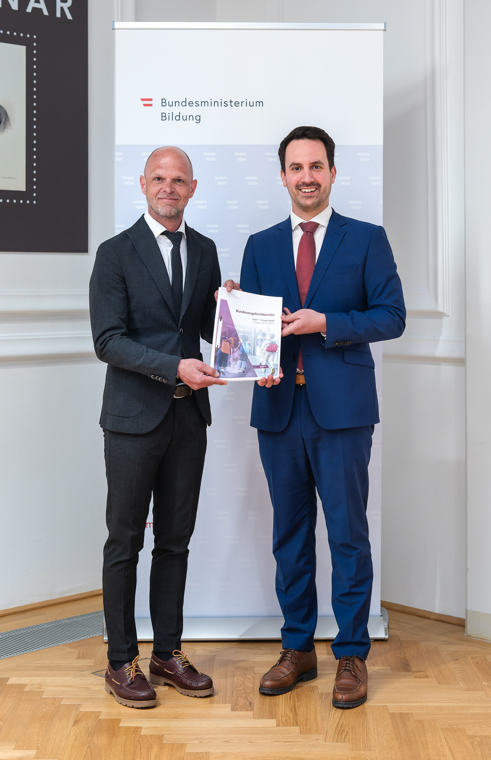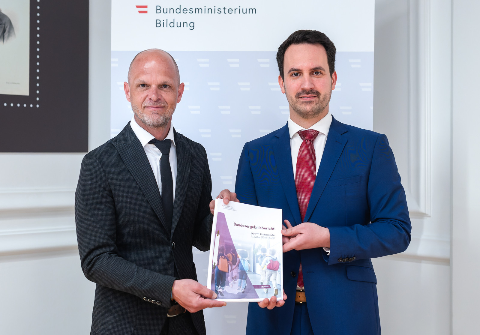 Bildungsminister Christoph Wiederkehr und Robert Klinglmair, Direktor des Instituts des Bundes für Qualitätssicherung im österreichischen Schulwesen (IQS), stellen die Ergebnisse aus 3 Jahren iKMPlus für Österreichs Volksschulen vor. Der erste Bundesergebnisbericht fasst die Ergebnisse des 1. Erhebungszyklus (2023-2025) der individuellen Kompetenzmessung PLUS für die 4. Schulstufe auf Österreich- und Bundeslandebene zusammen. Er gibt Aufschluss darüber, wie gut Österreichs Schülerinnen und Schüler am Ende der Volksschule die Bildungsstandards erreichen.