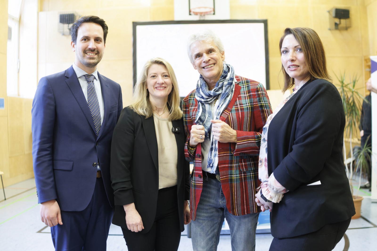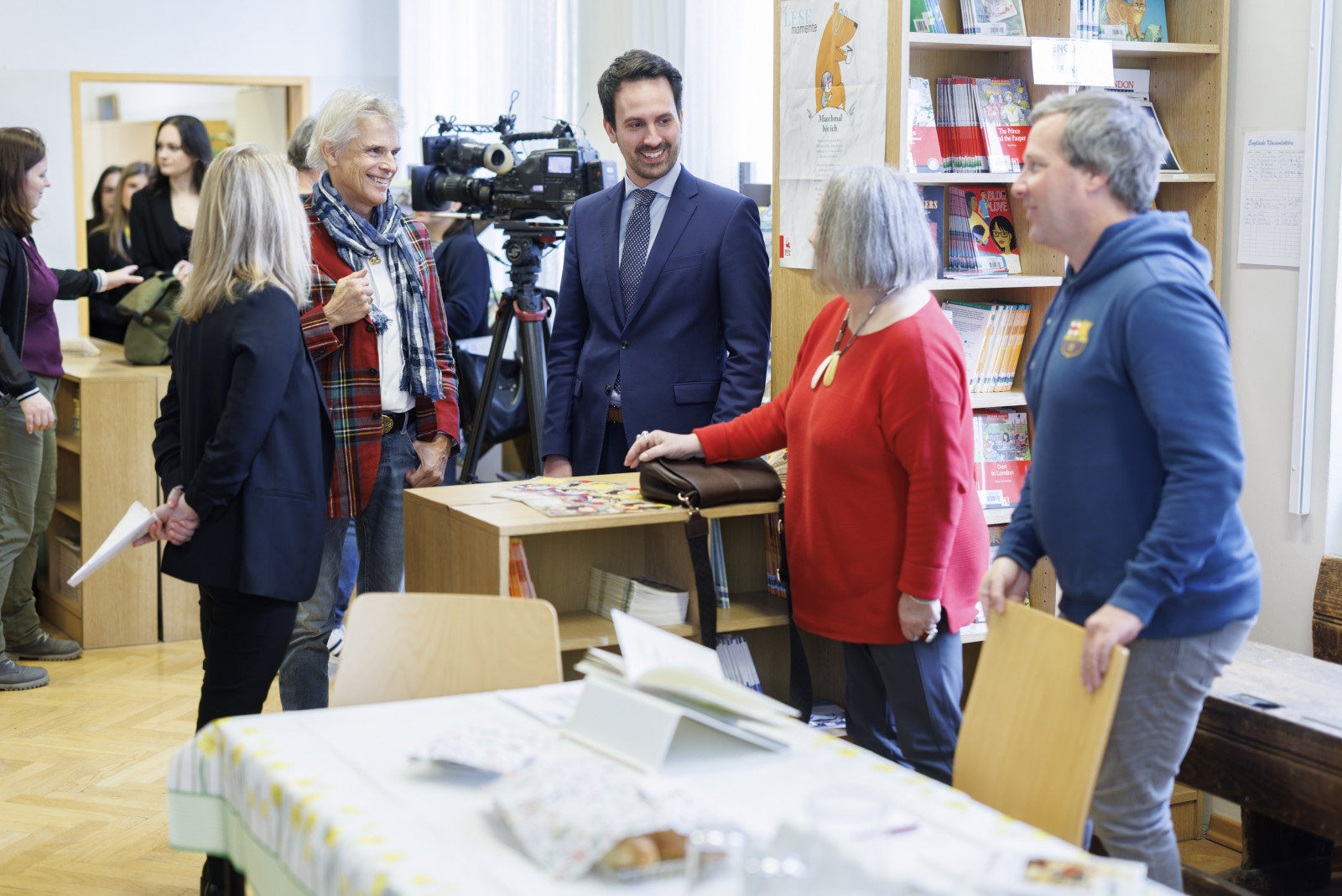 Im Rahmen eines Medientermins präsentierten Bildungsminister Christoph Wiederkehr, Autor Thomas Brezina, Lesepatin Elisabeth Rathbauer und echo medienhaus Geschäftsführer Christian Pöttler den offiziellen Startschuss der österreichweiten Initiative zum qualitativen und quantitativen Ausbau der Lesepatenschaften.